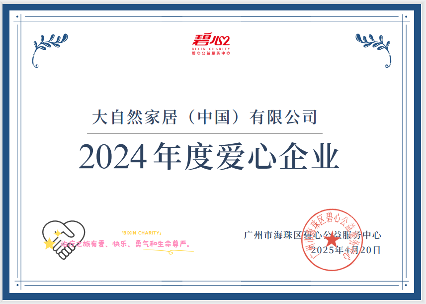2025-04-28 | 獲頒感謝狀 | 從綠色家居到守護(hù)健康,大自然家居以愛(ài)之名行公益之路